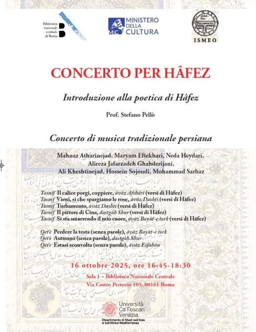 tefano Pellò. Concerto di musica tradizionale persiana con Mahnaz Atharinejad, Maryam Eftekhari, Neda Heydari, Alireza Jafarzadeh Ghahderijani, Ali Kheshtinejad, Hossein Sojoudi, Mohammad Sarbaz.