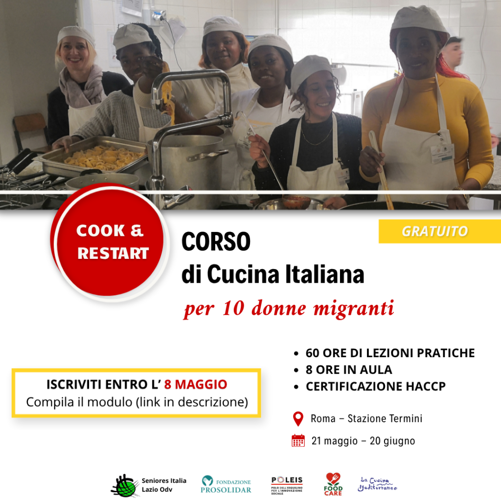 Sono aperte le iscrizioni al nuovo corso gratuito di Cucina, che si svolgerà presso il ristorante "La Cucina Mediterraneo " (stazione Termini) dal 21 maggio al 20 giugno 2026.